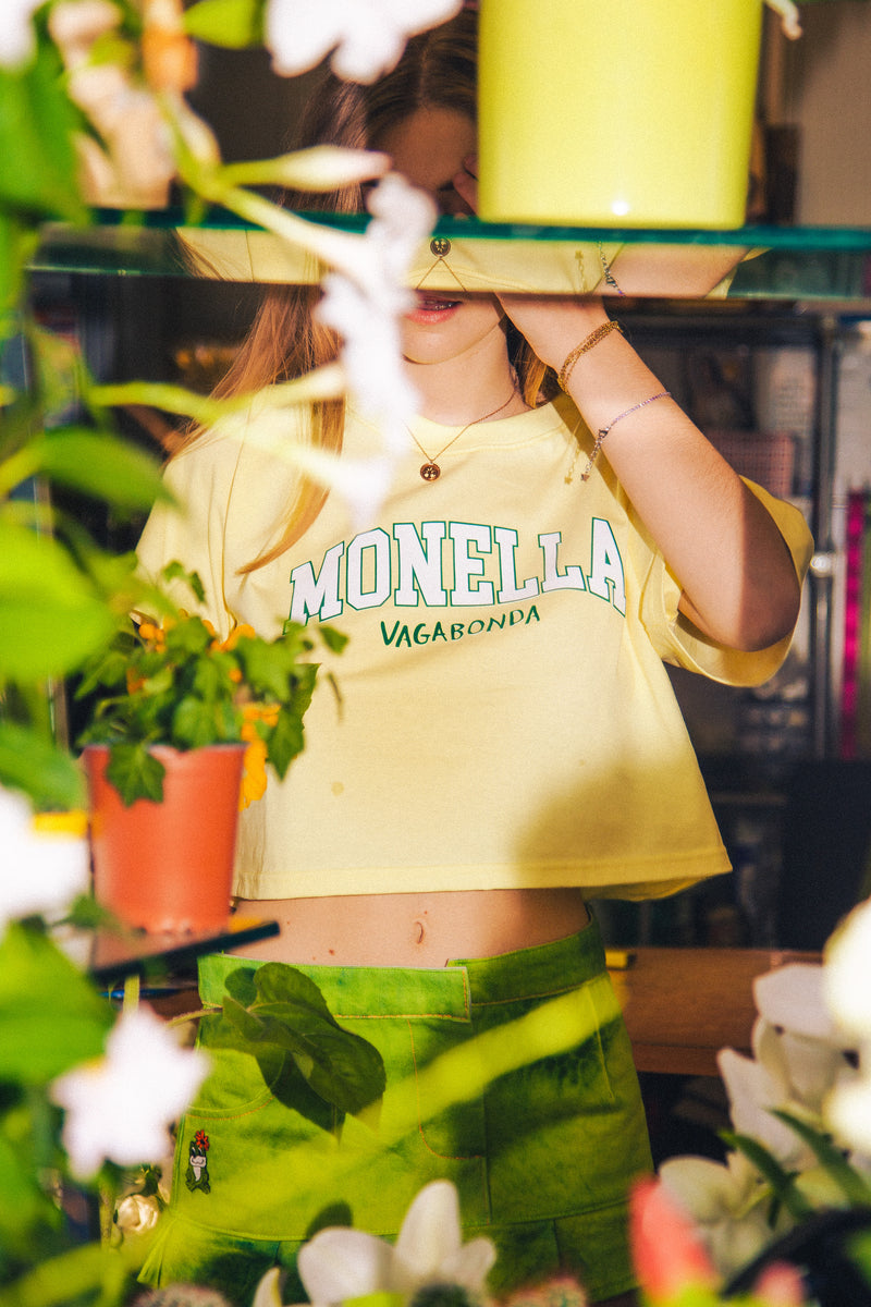T-shirt crop Monella College - Giallo